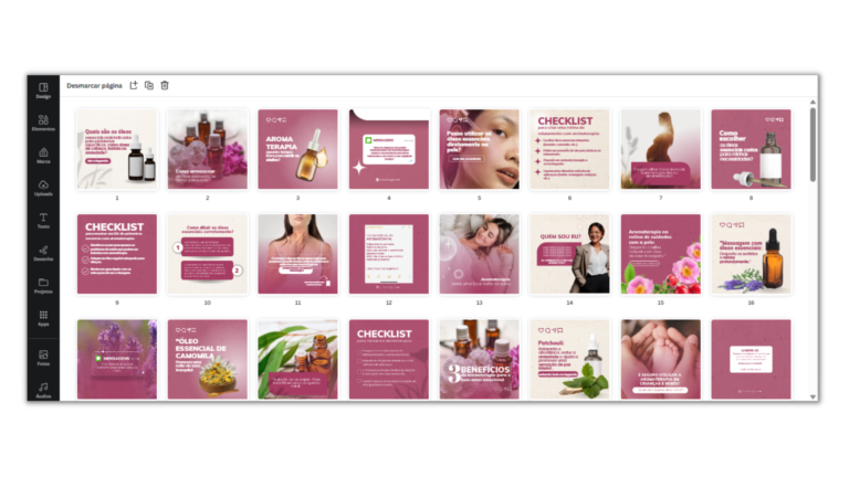O Canva Pack PARA AROMATERAPIA não necessita dos recursos pagos do Canva.