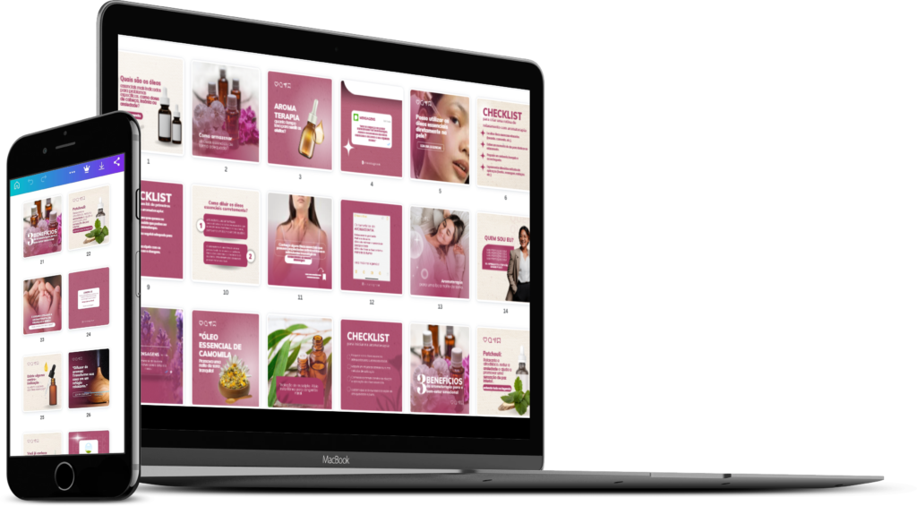 Sim! Basta você baixar o aplicativo do Canva e acessar o PACK PARA AROMATERAPIA por lá para criar suas postagens direto pelo seu celular.